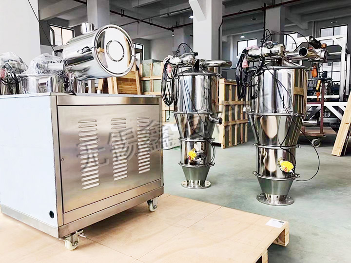 該機是國內合適、完善的粉狀料、粒狀料、粉粒料混合料的真空輸送設備。真空上料機能自動地將各種物料輸送到包裝機、注塑機、粉碎機等設備的料斗中,也能直接把混合的物料輸送到混合機(如V型混合機、二維混合機、三維混合機等)中,減輕了工人勞動強度,解決了加料時粉塵外溢等問題,是制藥廠、促進清潔、文明生產的設備。